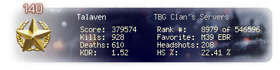 | Battlelog Stats: www.Battlelog.Battlefield.com | BF4DB: www.BF4DB.com |