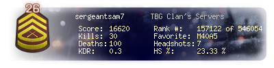 | Battlelog Stats: www.Battlelog.Battlefield.com | BF4DB: www.BF4DB.com |