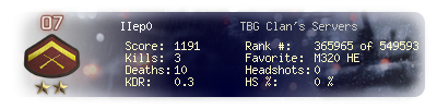 | Battlelog Stats: www.Battlelog.Battlefield.com | BF4DB: www.BF4DB.com |