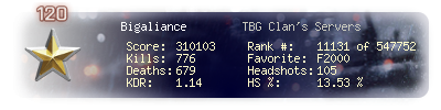 | Battlelog Stats: www.Battlelog.Battlefield.com | BF4DB: www.BF4DB.com |