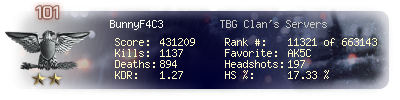 | Battlelog Stats: www.Battlelog.Battlefield.com | BF4DB: www.BF4DB.com |